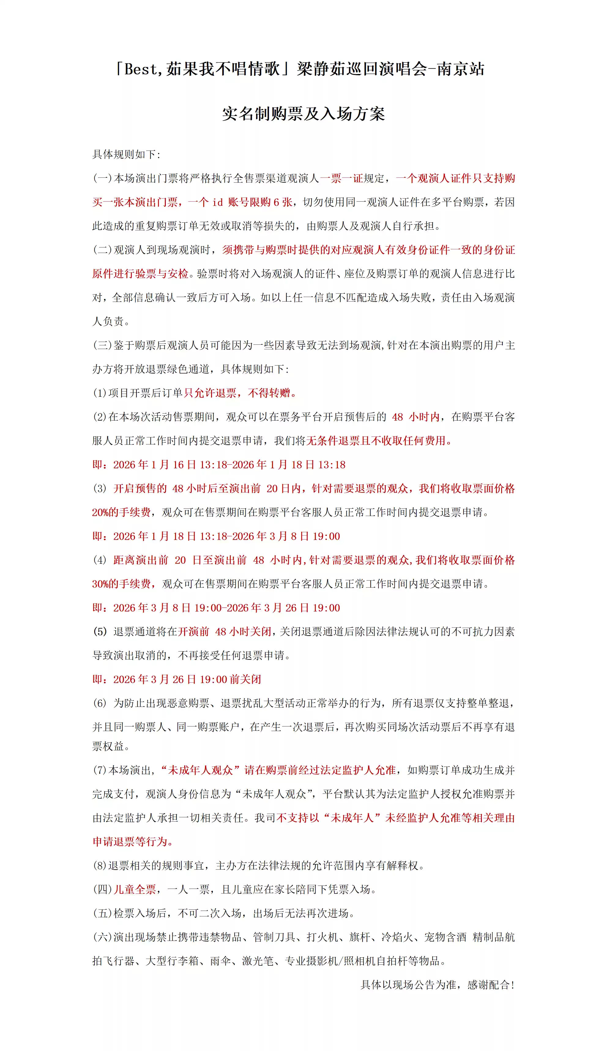 1.购买前请您提前规划好行程,做好相应准备,以免影响您的正常观演,感谢您的理解和配合。