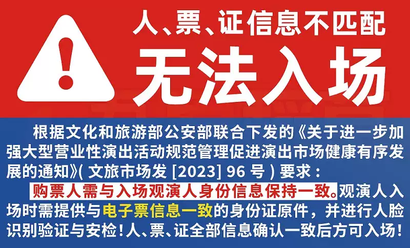4.入场后,请严格按照票面指定区域和座位对号入座,请勿在演出期间换座,文明观演。