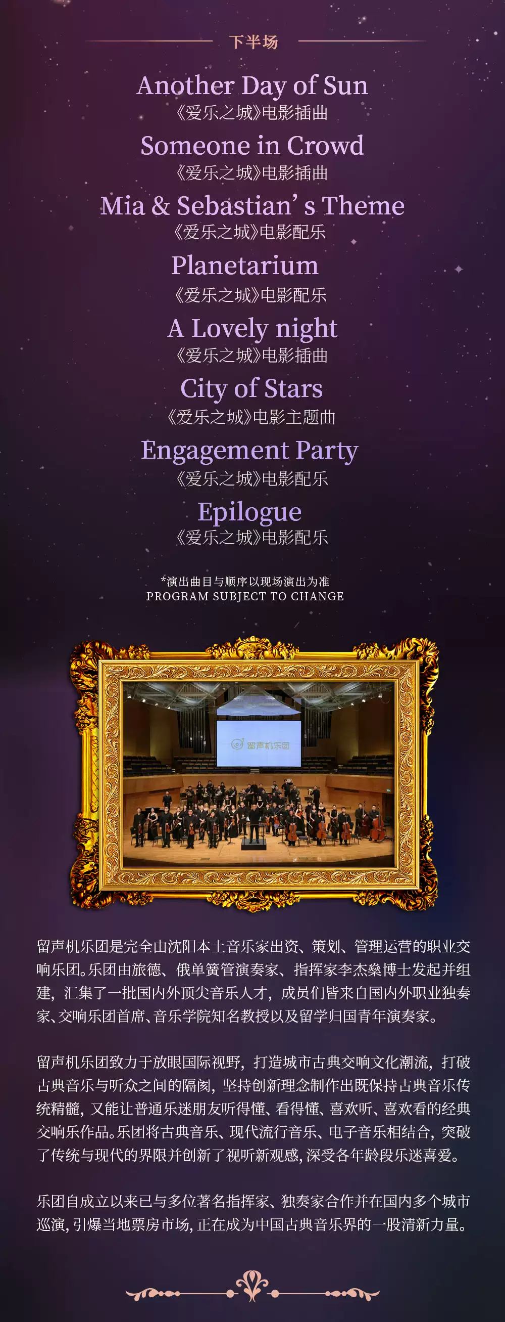 票品为有价证券,非普通商品,其背后承载的文化服务具有时效性、唯一性、稀缺性等特征,如非演出变更或不可抗力因素,一经支付,不退不换,敬请谅解!