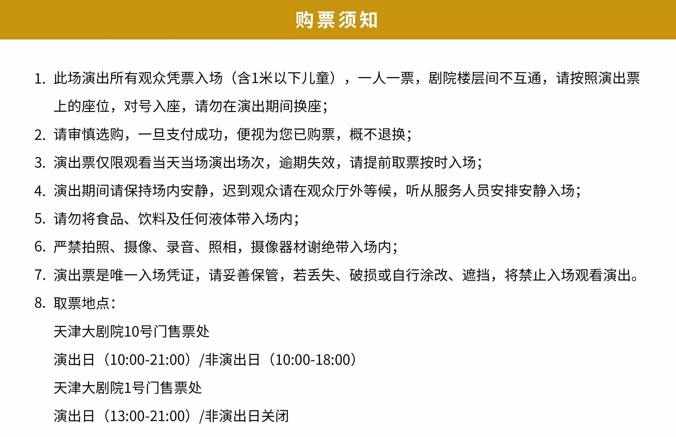 票品为有价证券,非普通商品,其背后承载的文化服务具有时效性、唯一性、稀缺性等特征,如非演出变更或不可抗力因素,一经支付,不退不换,敬请谅解!