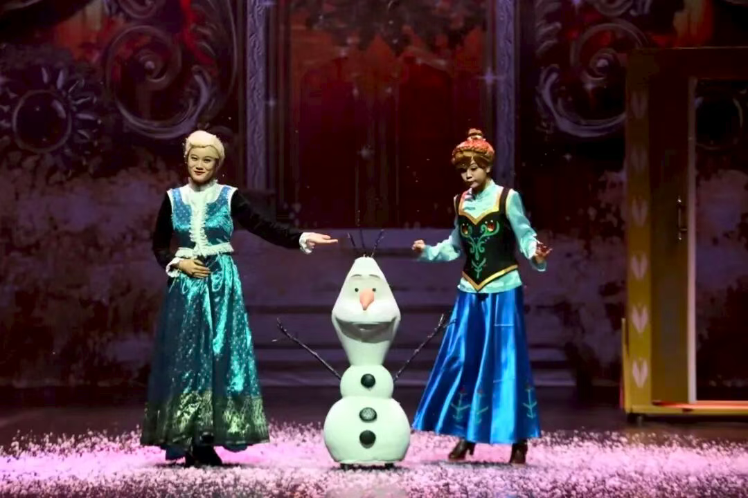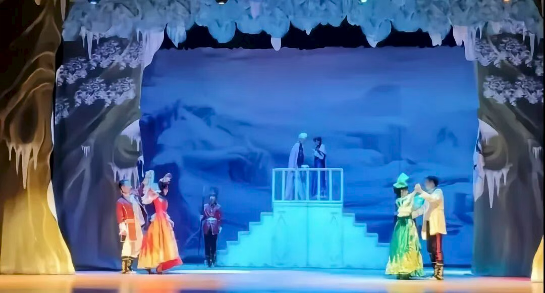 《冰雪女王一冰封的爱》创造了一个绚丽的舞台场景,既有漫天纷飞的冰雪世界,也有气势恢宏的皇宫宝殿,加上灯光色彩的巧妙渲染,不但增强了故事内容的可观性,逼真的布景道具还让观众有种身临其境的真实感受。